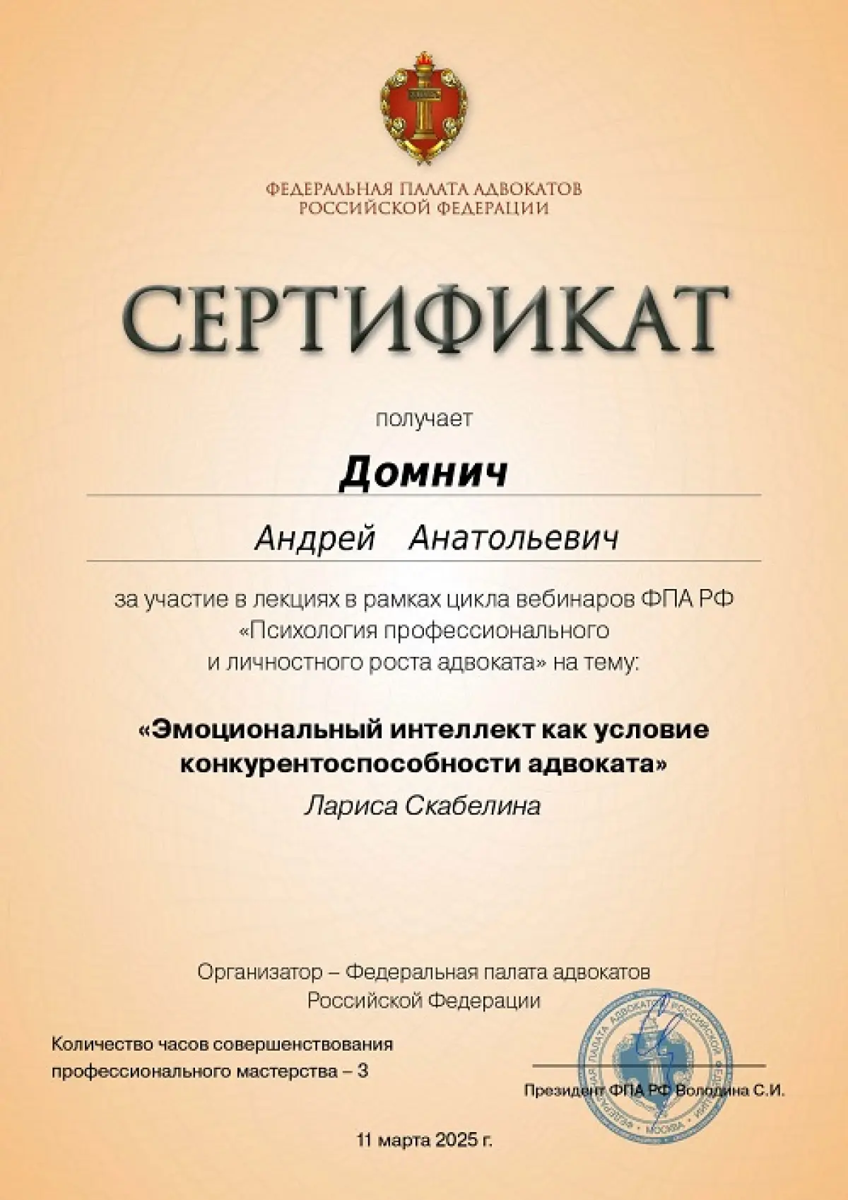 Адвокат Домнич Андрей Анатольевич — защита по уголовным делам