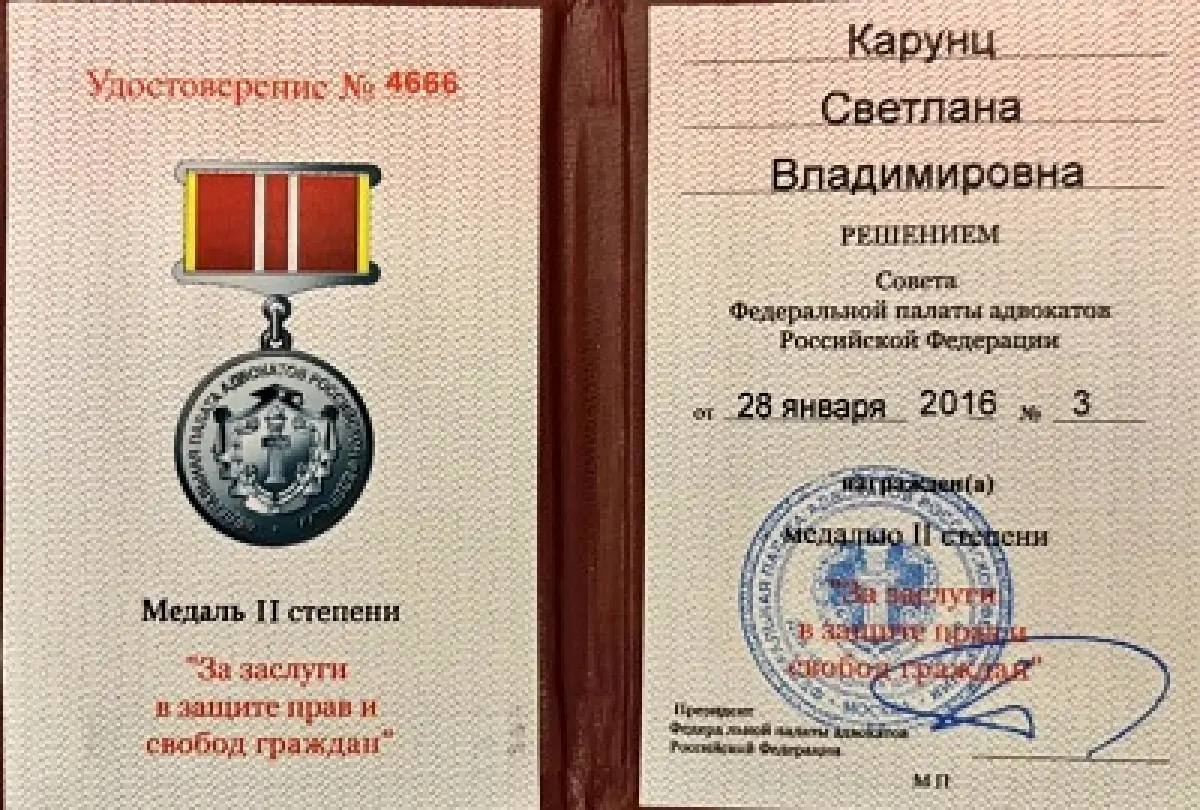 Адвокат Карунц Светлана Владимировна — сложные гражданские и уголовные дела